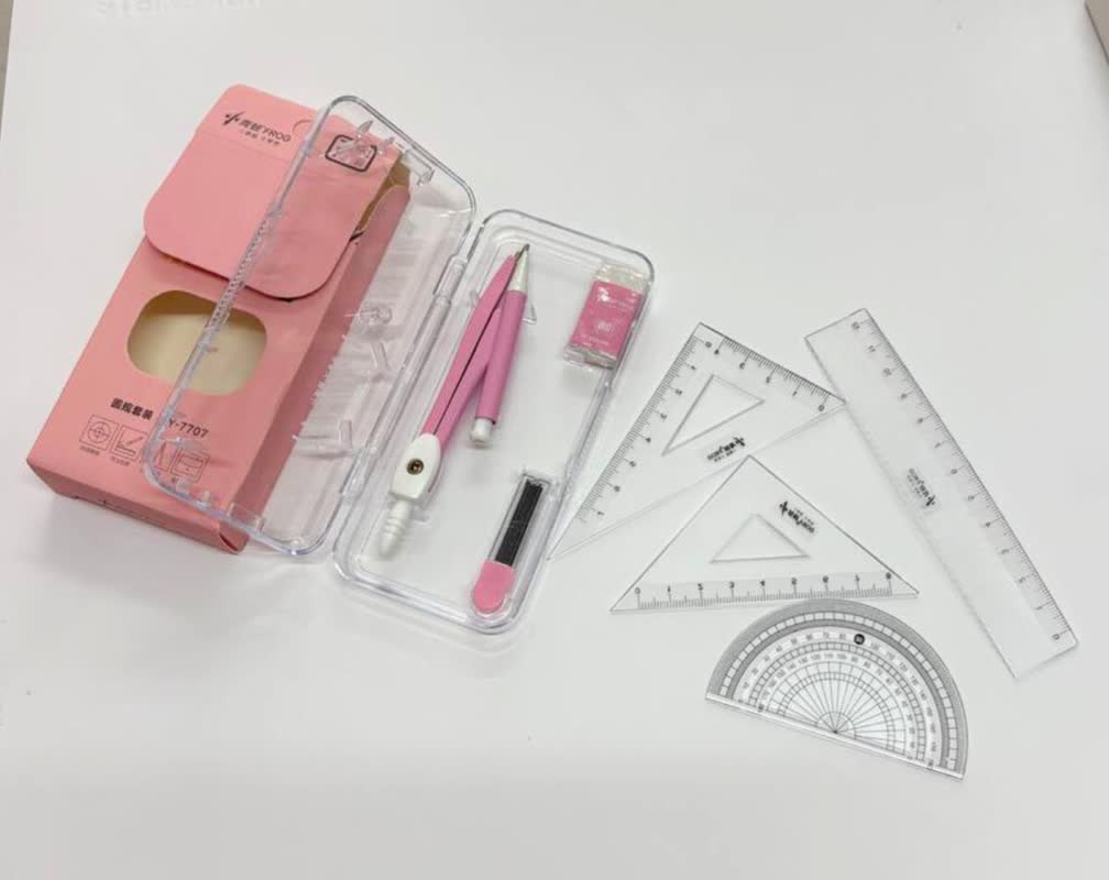 ست 8 تیکه پرگار اتودی همرا با مغز اتود/ نقاله /گونیا45 و 90 درجه/خط کش 15 سانتی/پاکن 2B/ اتود 0.5