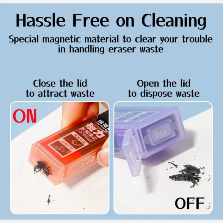 پاکن مغناطیسی ✨️ مگنتی هست و حاوی پودر آهنه، باقیمانده پاک کن رو می تونه با آهنربای نئودیمیم در انتهاش جمع آوری کنه. مغناطیسی در حین کار، کمترین میزان پرز را تولید کرده و شما را با صحنهی پر شدن کتاب و دفتر و دوروبرتان از برادههایش روبرو نمیکند🥰 این محصول آهن ربایی قدرت پاککنندگی بسیار زیادی دارد و اثری از اشتباه نوشتار شما باقی نمیگذارد😍 جنس پاکن: عالی و با کیفیت 👌