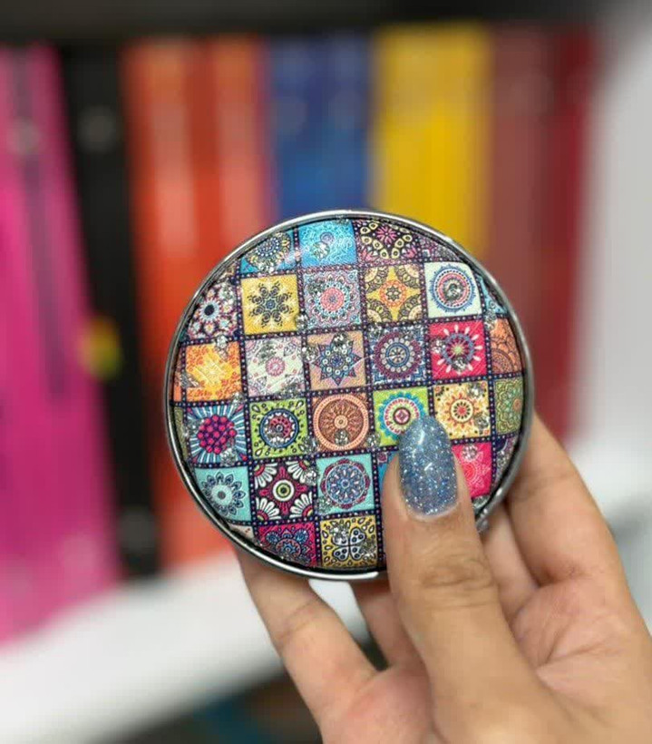 با طراحی خاص و رنگارنگ برگرفته از هنر اصیل ایرانی، این آیینه جیبی دایره ای شکل، ترکیبی از ظرافت، زیبایی و کاربرد است.
