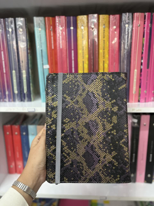 کلاسور ۲۶ حلقه چرمی طرح پوست ماری، ترکیبی از زیبایی، استحکام و کارایی است. این کلاسور با روکش چرم مصنوعی با کیفیت بالا و طراحی طرح پوست ماری، جلوهای شیک و متفاوت به میز کار یا کیف شما میدهد.