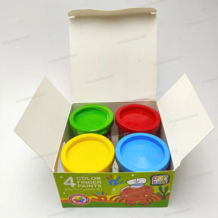 دارای چهار قوطی پلاستیکی رنگ به رنگ های آبی, سبز, قرمز , زرد