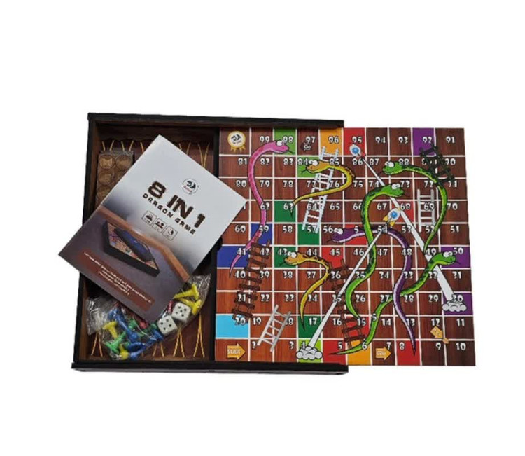 شامل ۸ بازی فکری متنوع دارای تخته چوبی با کیفیت بالا همراه با کیف چرمی مقاوم و شیک مناسب برای تمام سنین قابل حمل برای مسافرت و مهمانیها