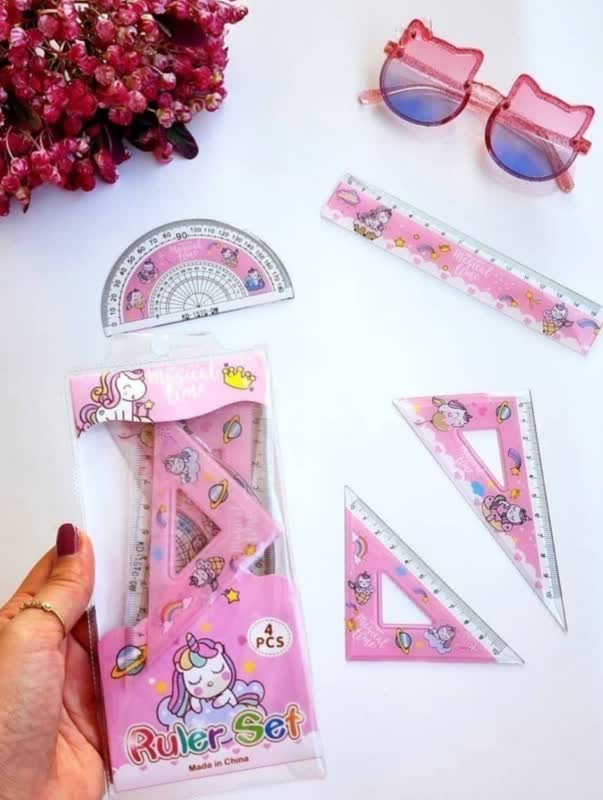ست خط کش فانتزی، گونیا نقاله تک شاخ، لوازم تحریر یونیکورن، ابزار هندسه با کیفیت، خط کش طلقی، ست هندسی دخترانه.