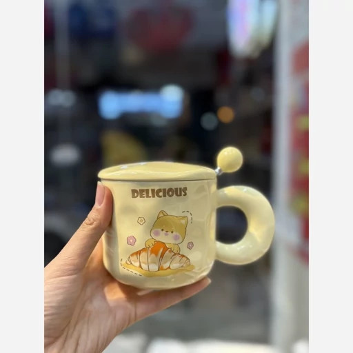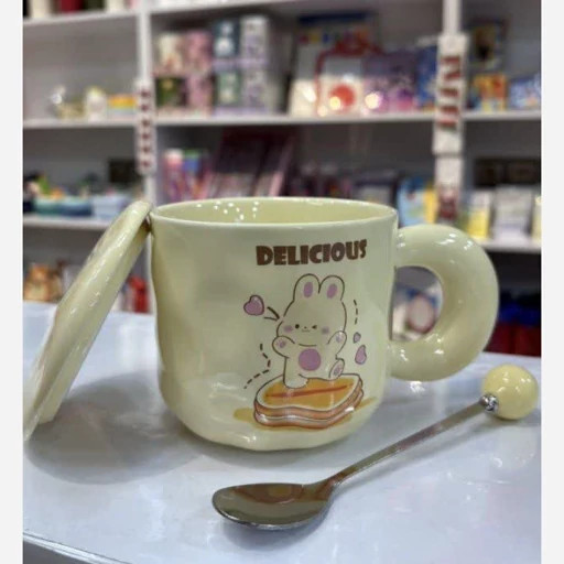 کامل و کاربردی همراه با درب سرامیکی برای گرم موندن نوشیدنی و قاشق کوچولو برای هم زدن.