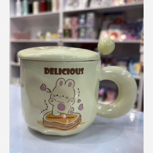 کامل و کاربردی همراه با درب سرامیکی برای گرم موندن نوشیدنی و قاشق کوچولو برای هم زدن.