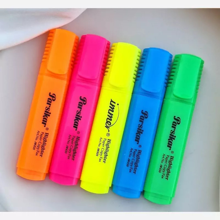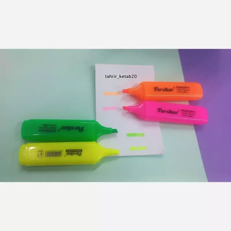 🥰ماژیک فسفری یا علامت زن🖍 #هایلایتر برند : پارسیکار نوع نوک : تخت جنس نوک : فیبر درپنج رنگ 🌈
