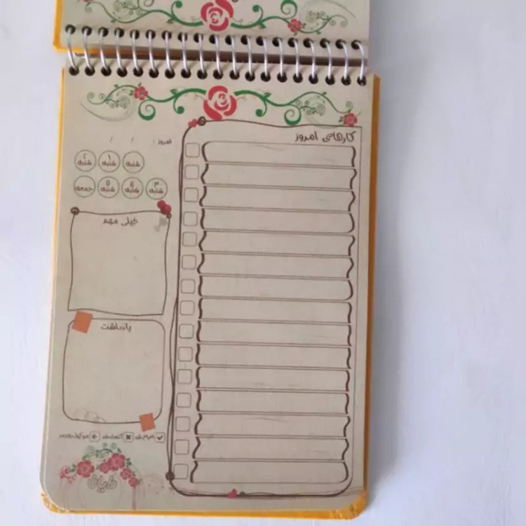 دفترچه یادداشت 60 برگ دایان مدل تودولیست ابعاد: 17×12×1.5 سانتی متر نوع صحافی: سیمی جلد سخت فرم صحافی: افقی