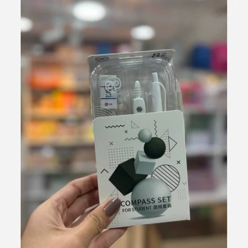ست 8 تیکه پرگار اتودی همرا با مغز اتود/ نقاله /گونیا45 و 90 درجه/خط کش 15 سانتی/پاکن 2B/ اتود 0.5